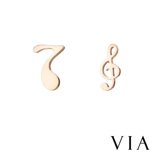 【VIA】符號系列 不對稱音符造型白鋼耳釘 造型耳釘 玫瑰金色
