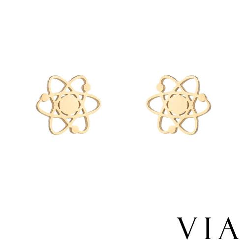 【VIA】個性系列 原子造型白鋼耳釘 造型耳釘 金色