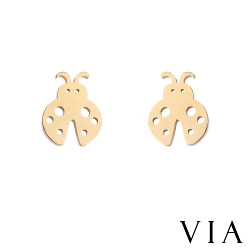 【VIA】昆蟲系列 可愛七星小瓢蟲造型白鋼耳釘 造型耳釘金色