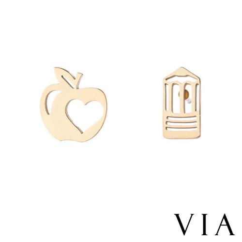 【VIA】個性系列 蘋果鉛筆不對稱造型白鋼耳釘 造型耳釘金色