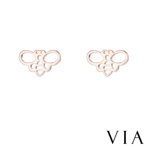 【VIA】昆蟲系列 縷空線條小蜜蜂造型白鋼耳釘 造型耳釘玫瑰金色