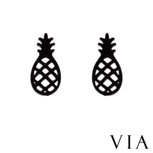 【VIA】植物系列 縷空小鳳梨造型白鋼耳釘 造型耳釘黑色