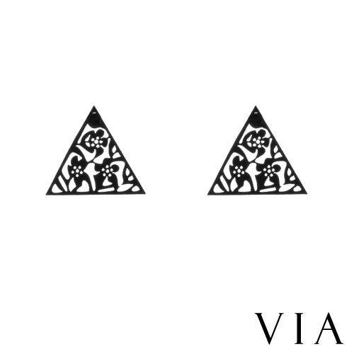 【VIA】植物系列 縷空花牆三角造型白鋼耳釘 造型耳釘 黑色