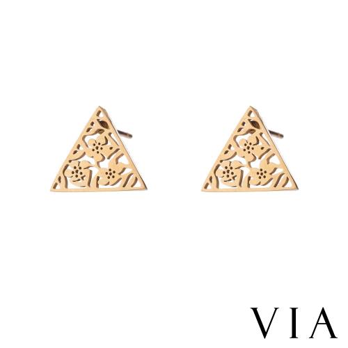 【VIA】植物系列 縷空花牆三角造型白鋼耳釘 造型耳釘 金色