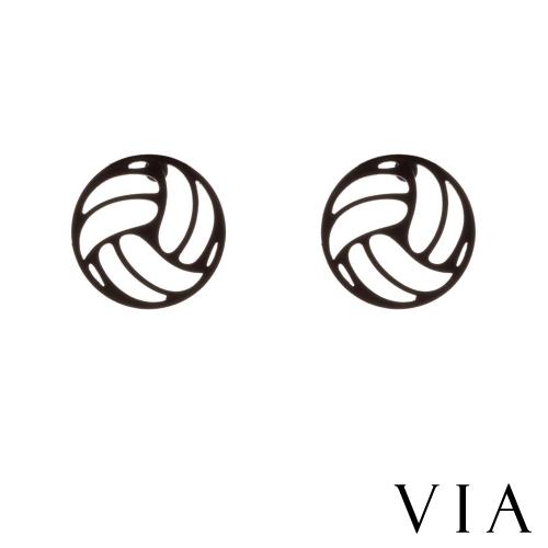 【VIA】運動系列 幾何縷空線條排球造型白鋼耳釘 造型耳釘 黑色