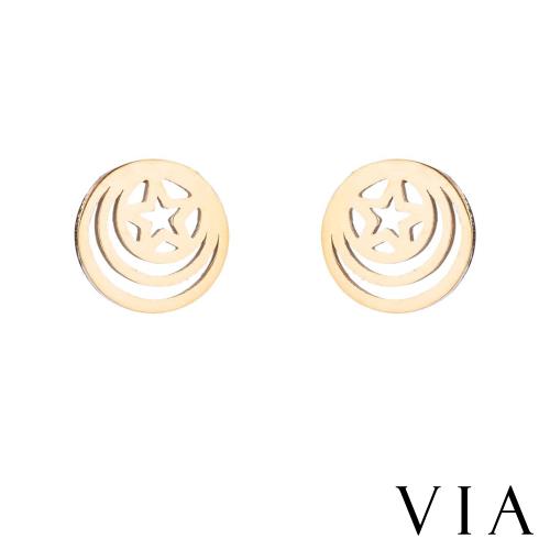 【VIA】星空系列 縷空五角星圈圈線條造型白鋼耳釘 造型耳釘 金色