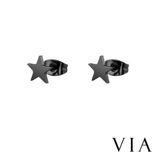 【VIA】星空系列 經典五角星造型白鋼耳釘 造型耳釘 黑色