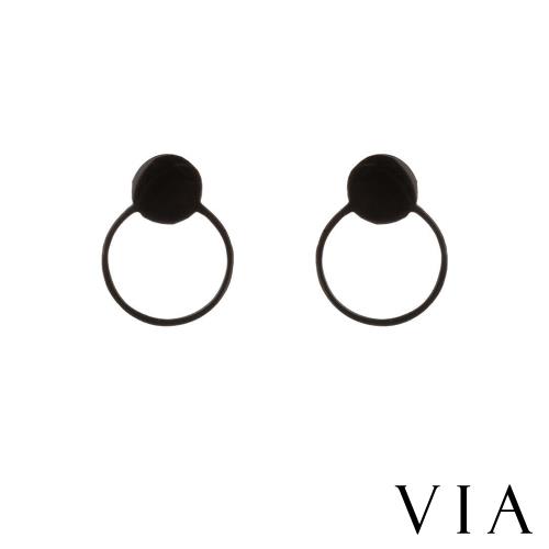 【VIA】符號系列 圓形縷空圈圈線條幾何造型白鋼耳釘 造型耳釘黑色