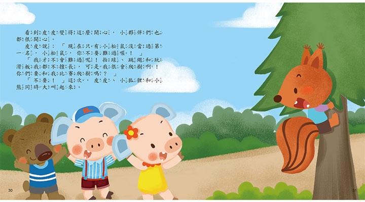 本書藉由小豬兄妹和朋友比賽各項運動的故事,帶領孩子認識數字的大小比較,並引導幼兒學習運動家精神、肯服輸、安慰好朋友等,除了認識數的比較外,亦相當富有教育意義。