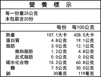 成份:黃豆(非基因改造)、麥芽糖、糖。
