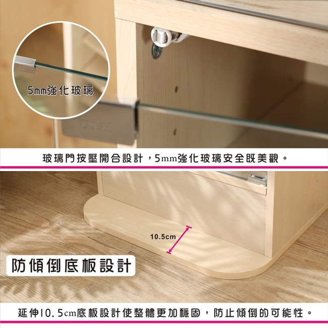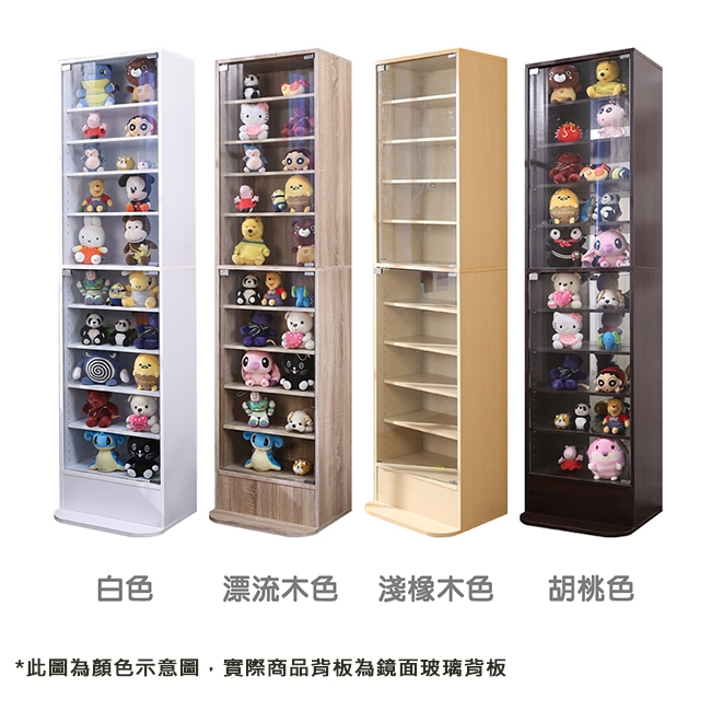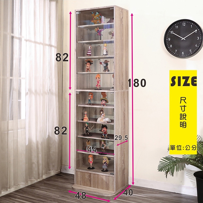 讓公仔們有個家吧,放到展示櫃裡擺放觀賞,朋友來時可以一同分享收藏,同時也可以裝飾家中的角落,全高180cm讓您完美呈現收藏品,8片活動層版可自由調整讓擺放不受限,按壓式玻璃門採用5mm強化玻璃,既安全又美觀,還不用擔心灰塵髒汙附著。這款升級版將背板改為鏡面,公仔收藏品反射在鏡面上,明亮質感讓視覺效果更提升。底部10.5cm防傾倒底板延伸可使整體更加穩固,此外整體板材使用低甲醛E1健康板材,讓您用的安心。不只可以放玩具公仔模型也可以當書櫃用或放小朋友的娃娃,如此多功能的櫃子,是家中不可或缺的好物。