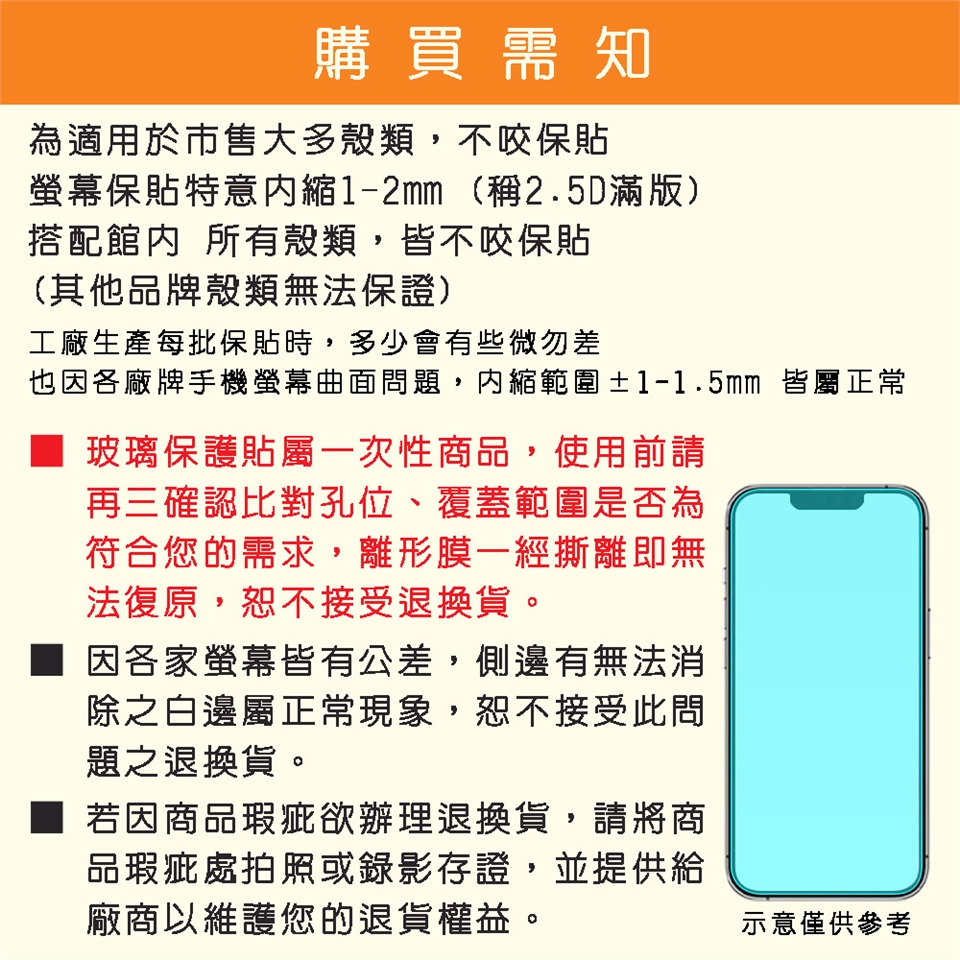 註3. 使用此產品受到太過強烈衝擊還是可能會損害手機螢幕,無法"完全"保證能保護螢幕在任何情況下不受損害