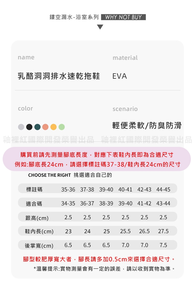 產品名稱:乳酪洞洞排水速乾拖鞋