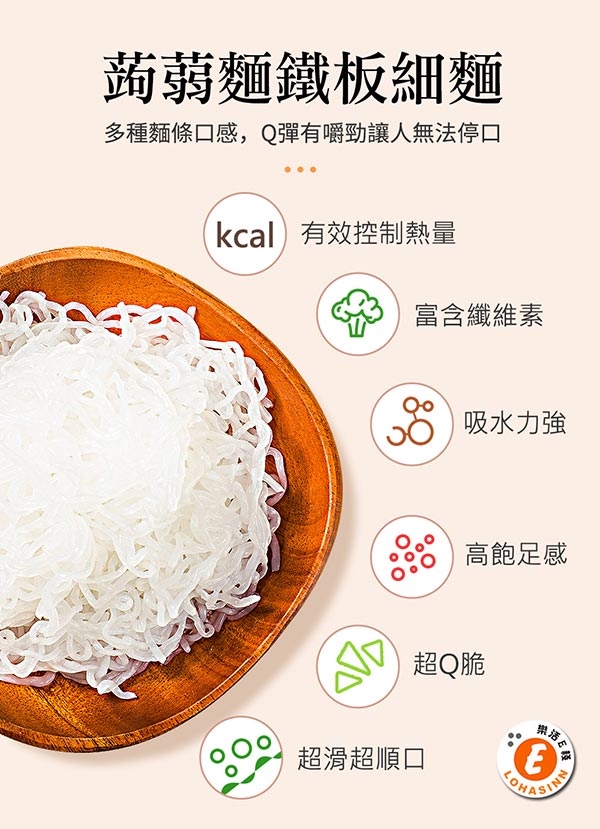樂活e棧 低卡蒟蒻麵 鐵板細麵+醬-商品特色