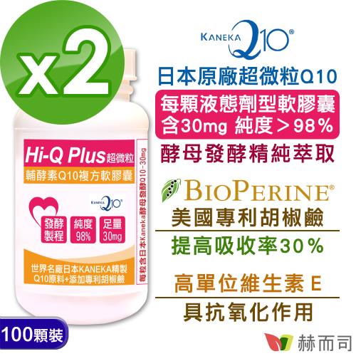 【赫而司】日本KANEKA原廠Q10(100顆*2罐)超微粒天然發酵Q10輔酵素+胡椒鹼軟膠囊,抗氧化促進新陳代謝