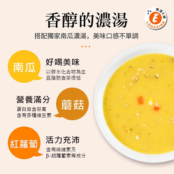 樂活e棧 低卡蒟蒻米+濃湯-南瓜蘑菇濃湯介紹