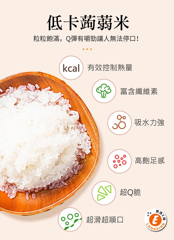 低卡飽足蒟蒻米,具有大量的膳食纖維,