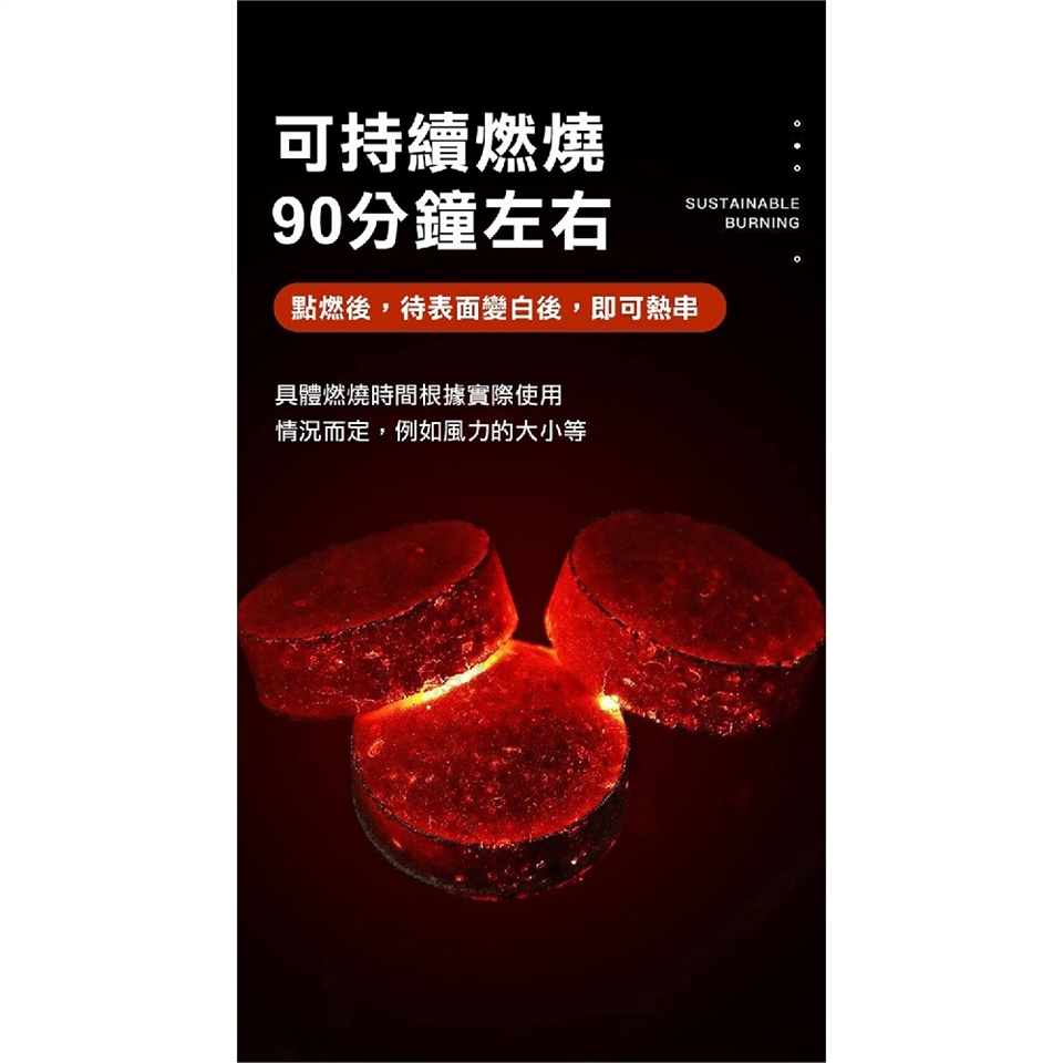 如在一般燒烤網燃燒50-60分