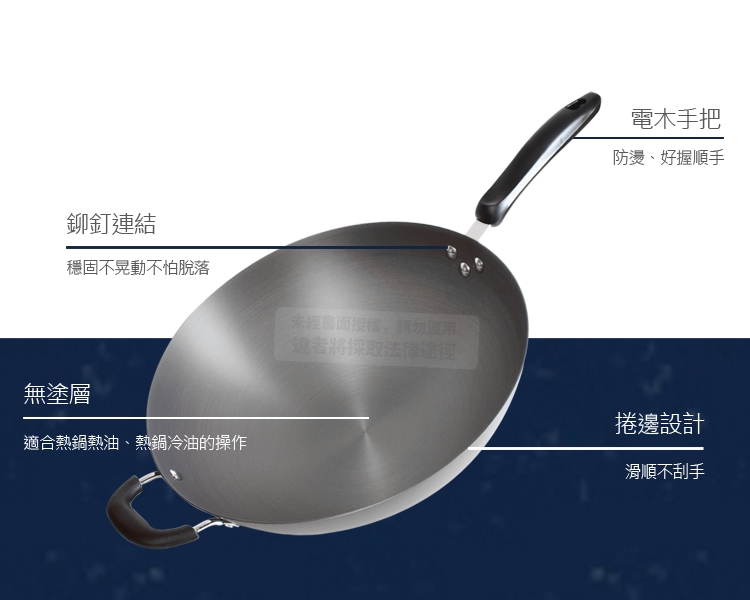 1.使用時請置於瓦斯爐的中央位置,注意火力,勿讓火燄超出鍋底,火燄如超出鍋底燒及把手,可能會使把手搖晃損壞及脫落,發生危險。