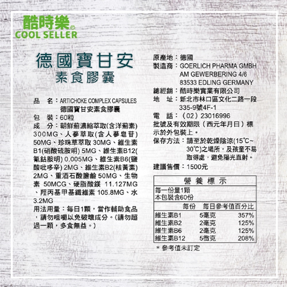 🔥內含四大成份 : 朝鮮薊 人蔘 真珠草 維他命B群🔥