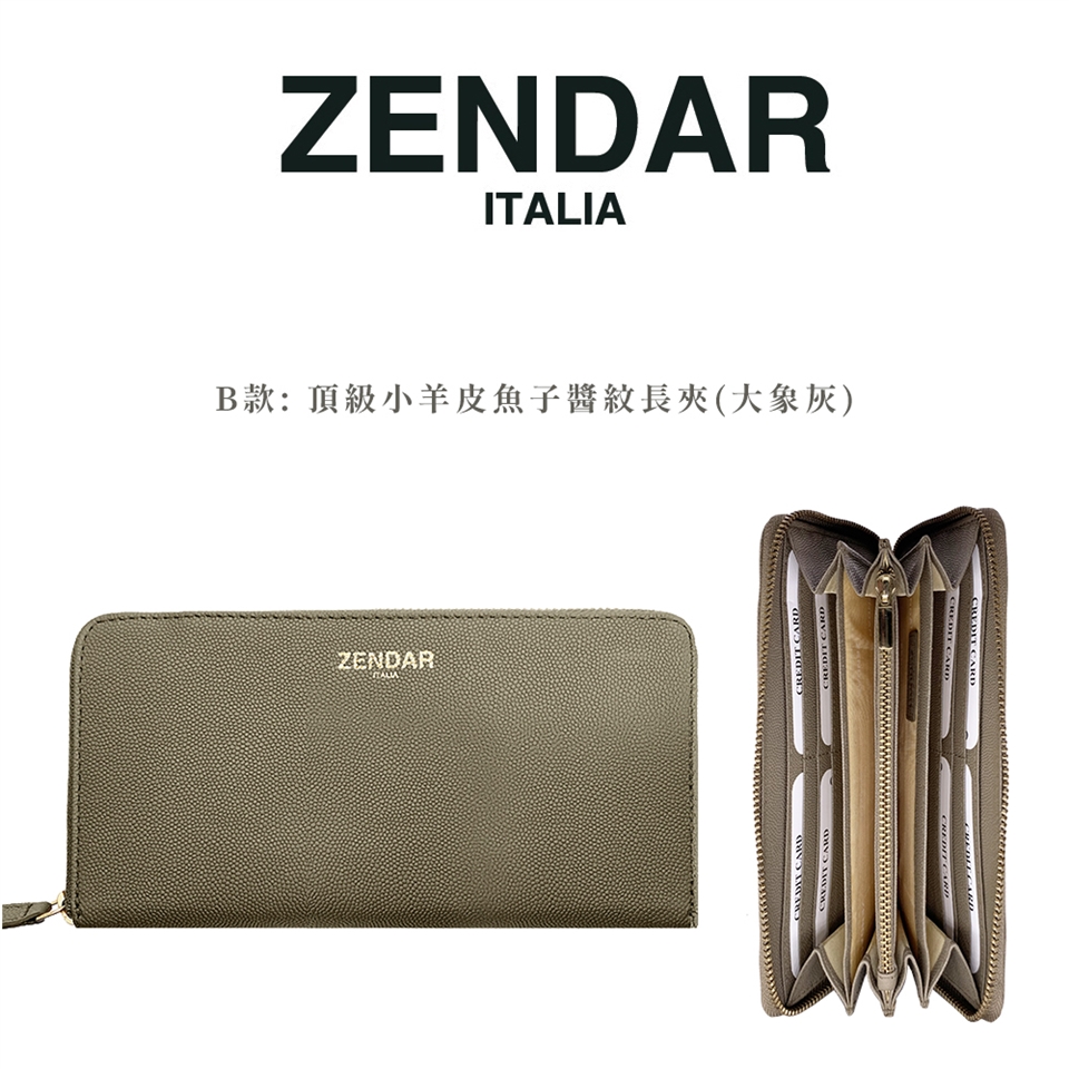 ZENDAR 頂級小羊皮拉鍊長夾