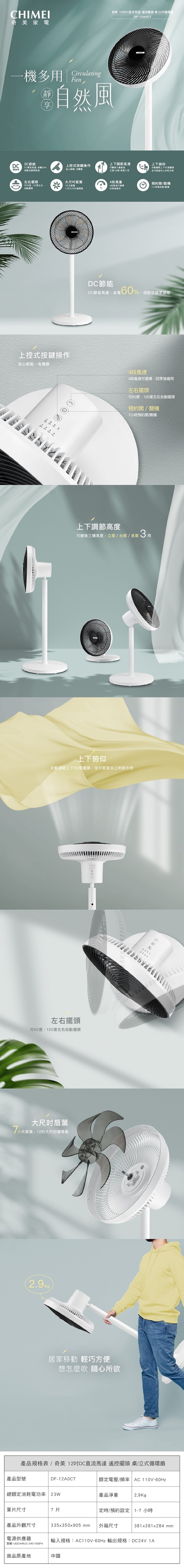 CHIMEI奇美 12吋DC節能桌W96立式循環扇 DF-12A0CT
