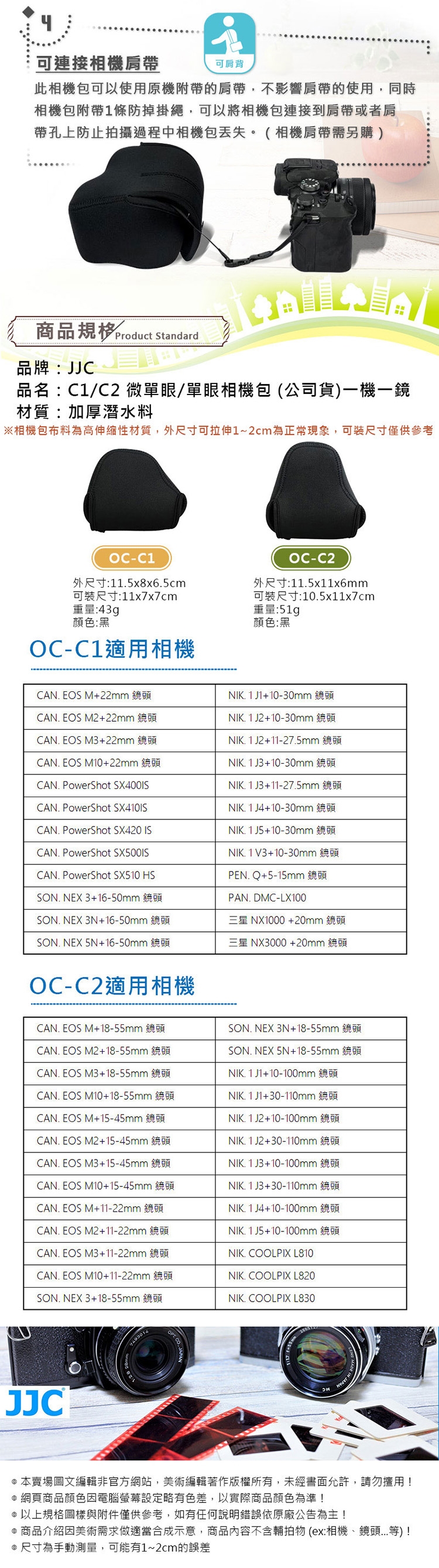 JJC OC-C1/C2 微單眼/單眼相機包 (公司貨)一機一鏡