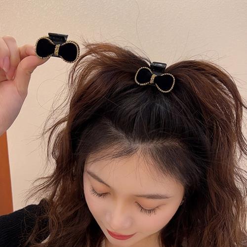 【Emi艾迷】優雅絲絨鑲鑽蝴蝶結 2入小抓夾 瀏海夾