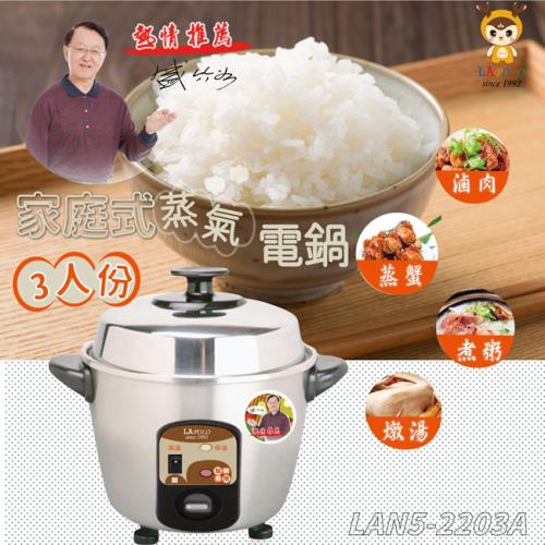 LAPOLO藍普諾3人份蒸氣全不鏽鋼電鍋 LAN5-2203A