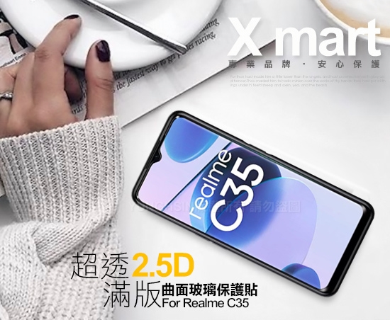 Xmart for Realme C35 超透滿版 2.5D 鋼化玻璃貼-黑
