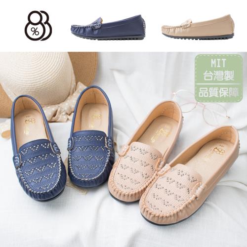 【88%】莫卡辛鞋 懶人鞋 MIT台灣製 舒適乳膠鞋墊水鑽裝飾1.5cm平底包鞋