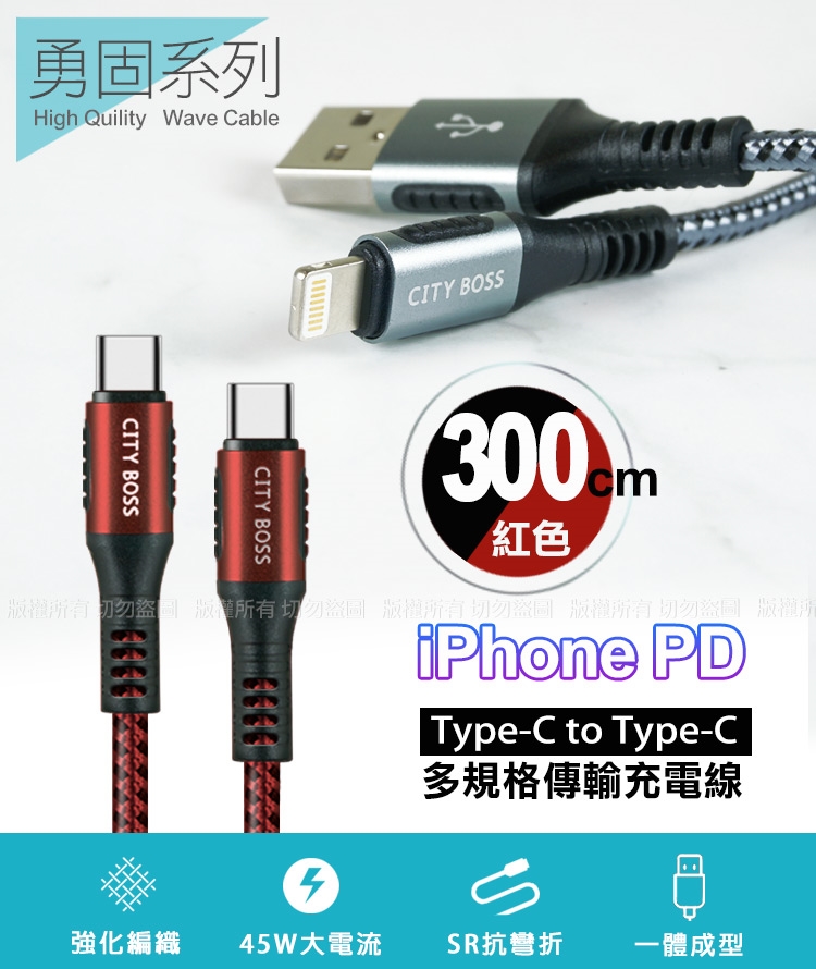 CityBoss勇固系列 Type-C to Type-C 100W 編織耐彎折快速充電線