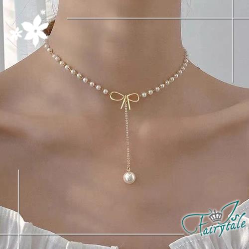 【伊飾童話】珍珠水滴*水鑽垂墜典雅短頸鍊