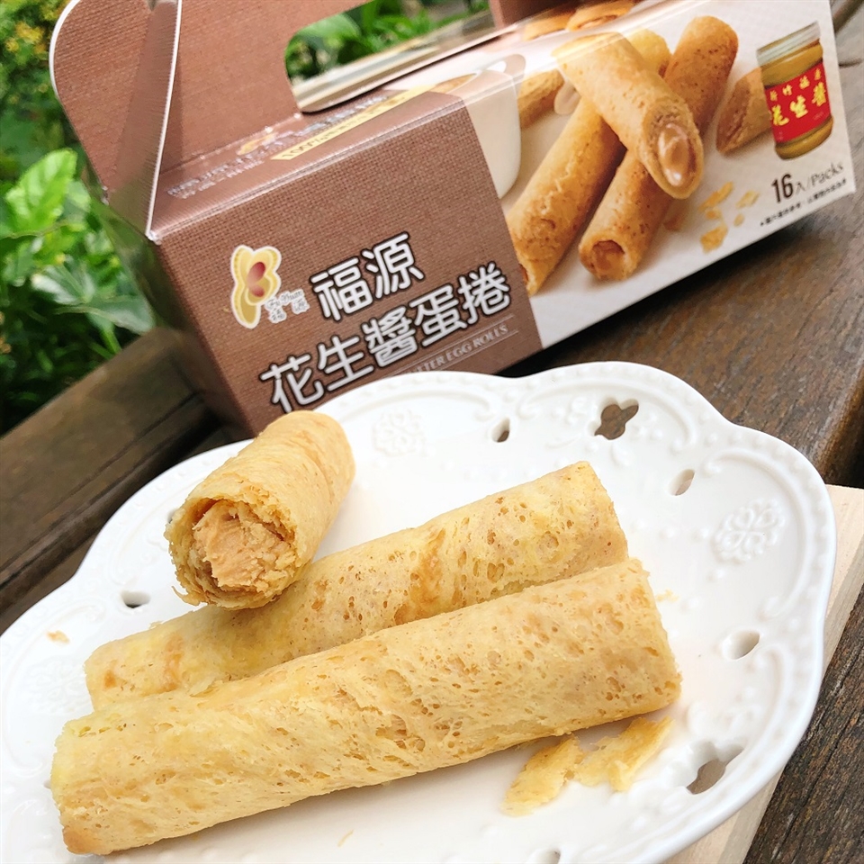 「新竹福源花生醬蛋捲」和「新竹福源花生醬芝麻蛋捲」是新竹必買人氣伴手禮,
