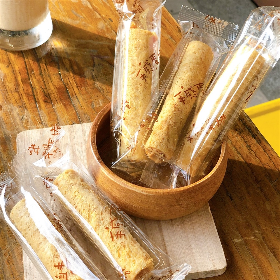 花生芝麻醬蛋捲採用新鮮雞蛋嚴選食材,傳統工法酥脆蛋捲餅皮、散發蛋香風味。