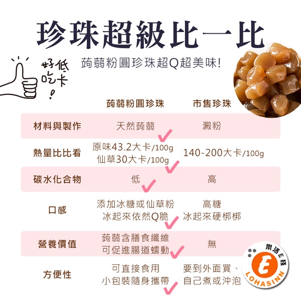 樂活e棧-微卡黑白配-即食蒟蒻粉圓珍珠-營養價值