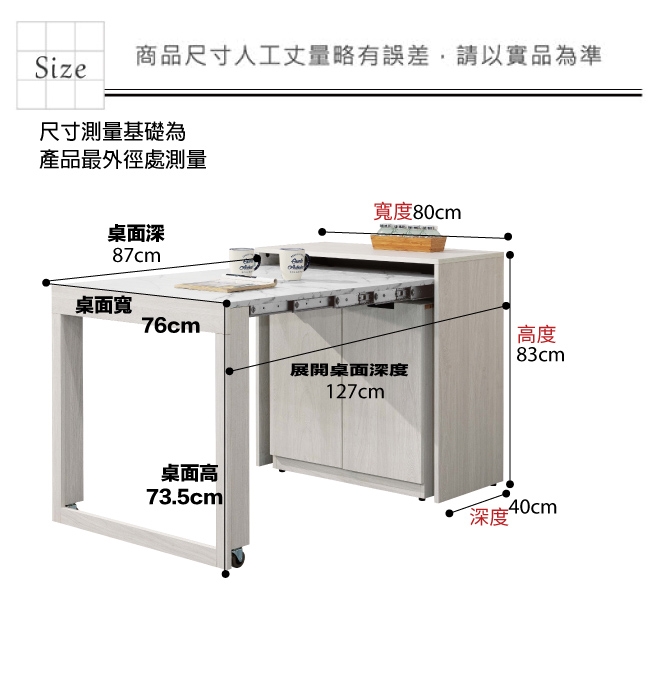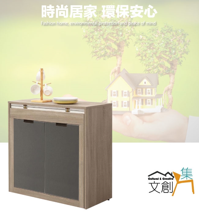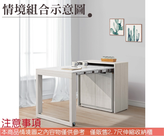 【文創集】凱溫斯2.7尺桌面伸縮餐櫃/中島桌(三色可選+可拉出桌面使用)   三色可選+現代簡約風格+安心材質製造,整體採用防蛀木心板+防潮耐磨腳座+防夾手緩衝門片五金+便利滑輪設置(中島桌櫃)等安心材質製造,產品外層採用防潮耐磨噴漆處理搭配採用開門櫃+開放式層格等收納空間設計,全由專人配送到家,專業安心服務,替你省下更多時間!