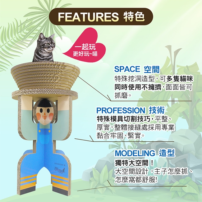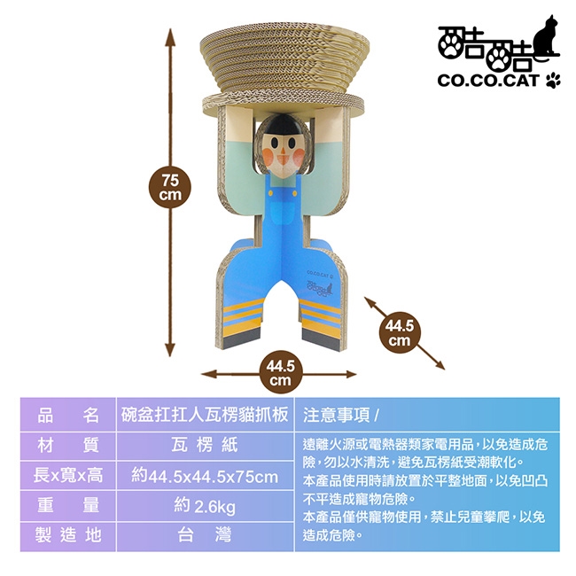 ◆品名:【酷酷貓 Co.Co.Cat】碗盆扛扛人-100%台灣製紙箱貓抓板(小男孩/機器人-隨機不挑款)