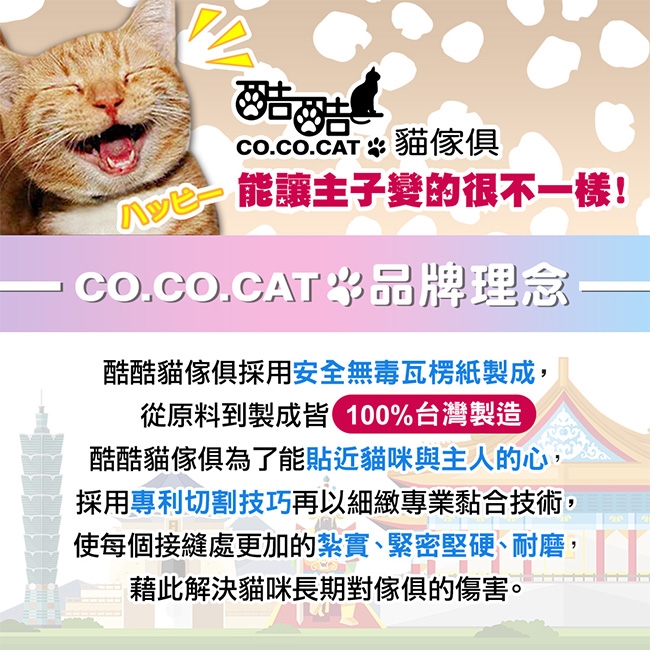 抓板為紙製品,請勿靠近火源及潮溼處,以免受潮無法使用,或滋生細菌。