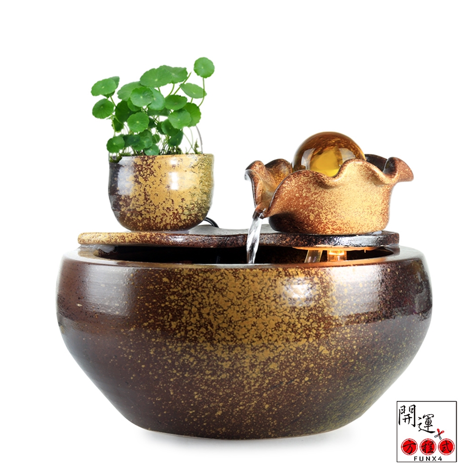 2.流水噴泉能夠持續的產生大量負離子,噴泉的細小水珠同空氣分子撞擊,能產生大量的負氧離子,進一步消除空氣中飄浮的正離子、異味及有害粉塵,吸附二氧化碳和家電產品釋放的電磁輻射,令室內空氣更清新;處在一個負離子環境將會使你感到輕鬆並且精神百倍!流水噴泉能夠調節室內濕度及溫度,改善室內空氣品質。
