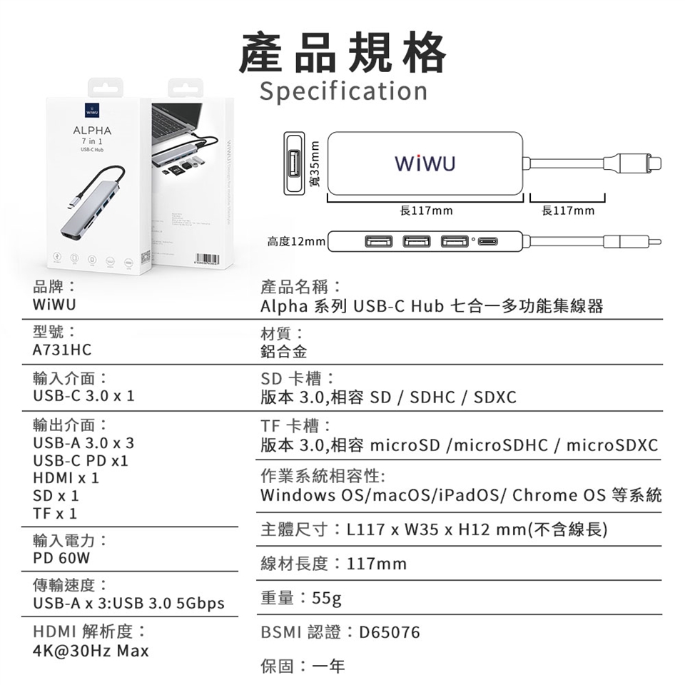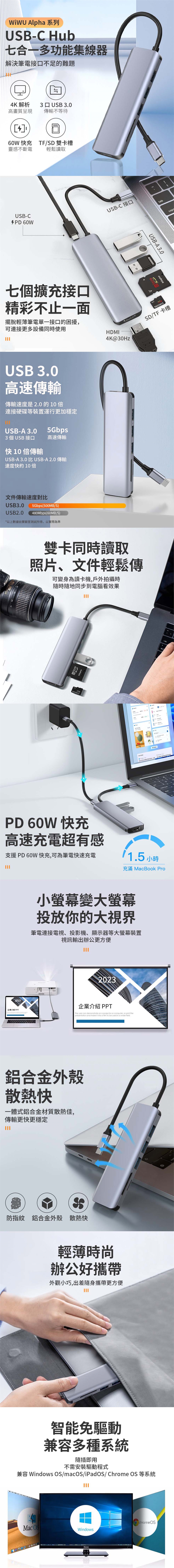 • 輸出介面:USB-A 3.0 x 3、USB-C PD x1 、HDMI x 1、SD x 1、TF x 1
