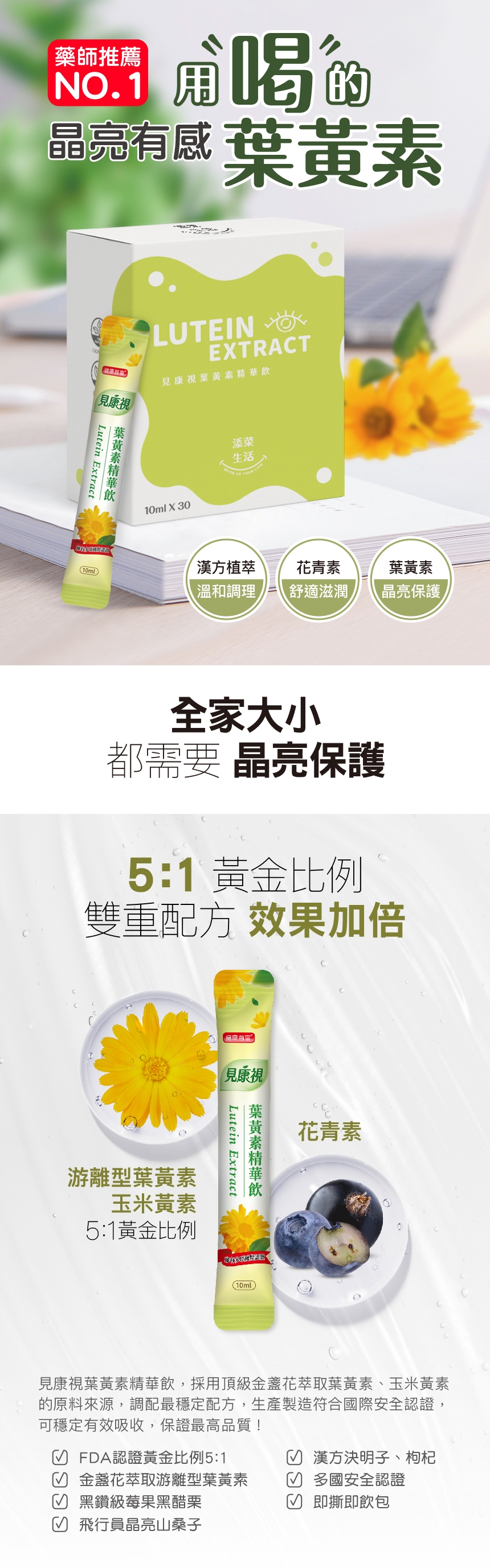• 美國FDA實驗證實葉黃素與玉米黃素最佳比例5:1