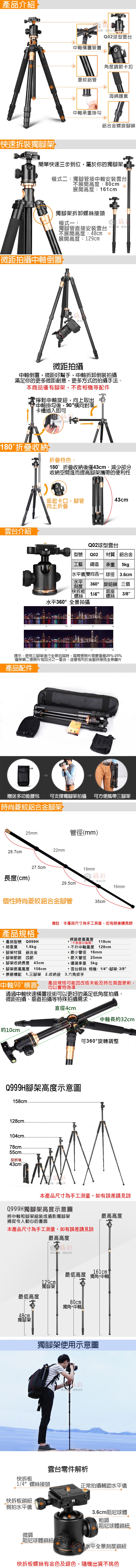 名  稱:Q999H中軸橫置三腳架