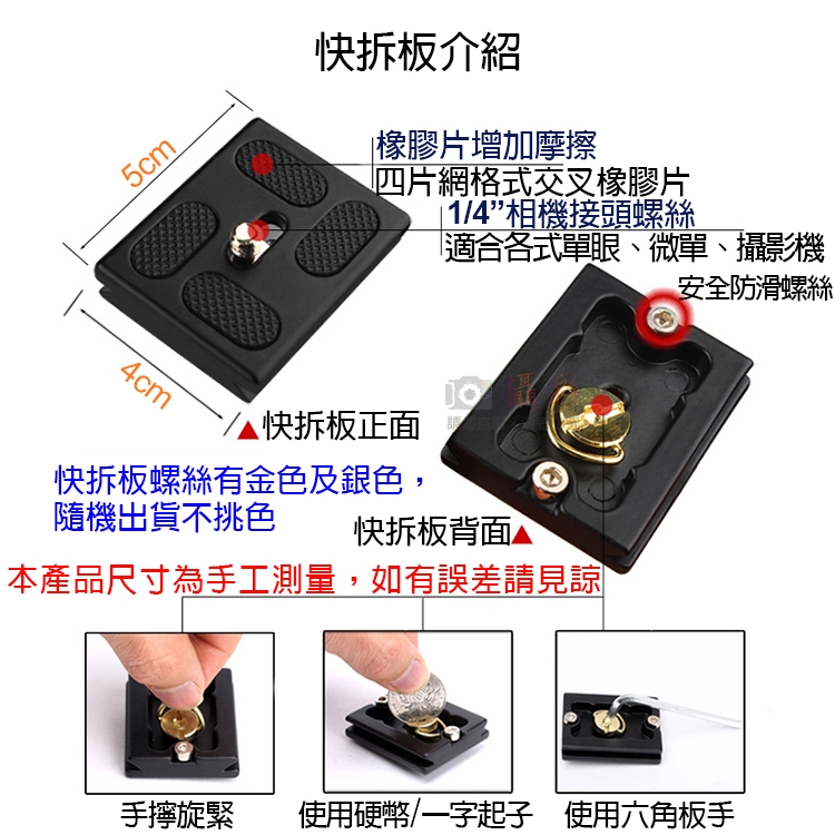 快拆板尺寸:5*4*1cm(快拆板螺絲有金色及銀色~隨機出貨不挑色)