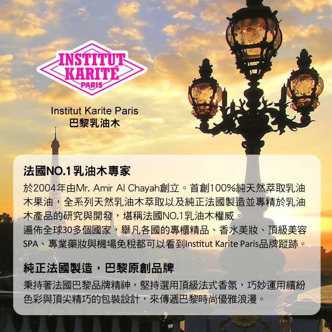 法國NO.1乳油木專家,國際首創全系列天然乳油木萃取的品牌。