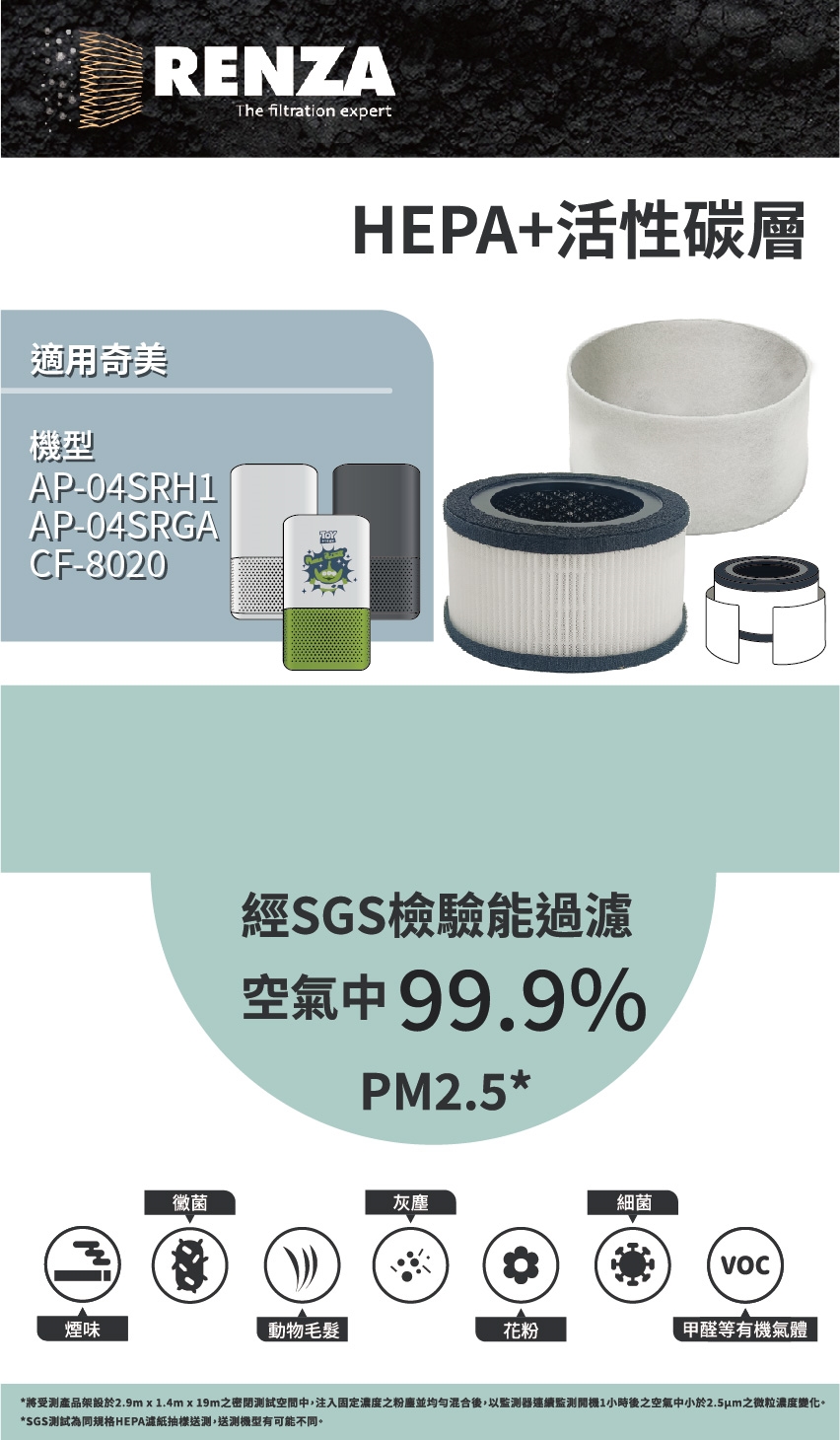 RENZA HEPA濾網 + 活性碳濾網
