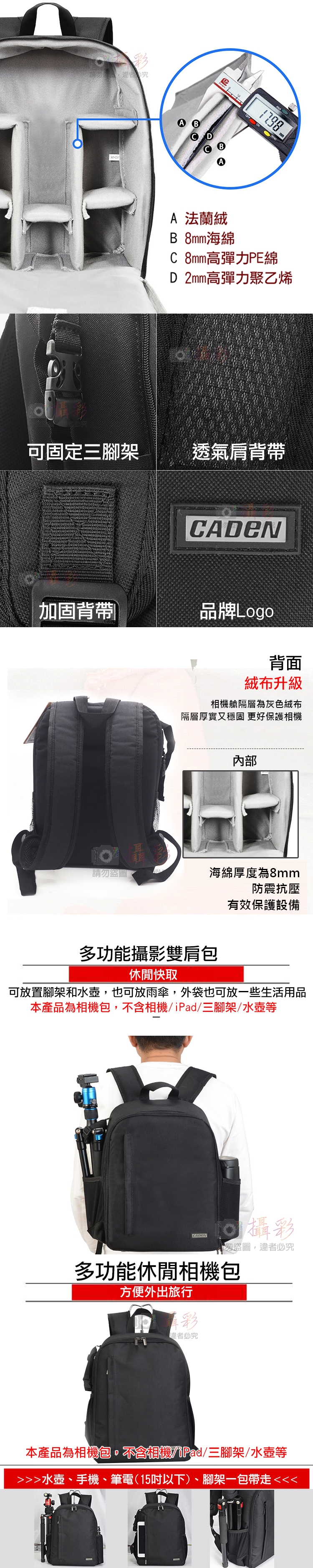 名稱:卡登D6超值攝影雙肩包