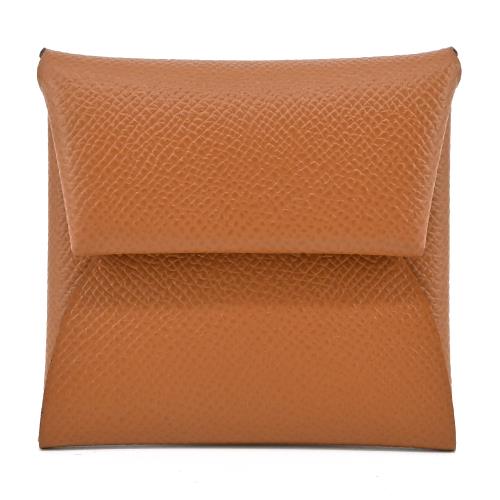 Hermes 愛馬仕 Bastia Epsom撞色內裡方形釦式零錢包(AJ駝金/氣泡綠)