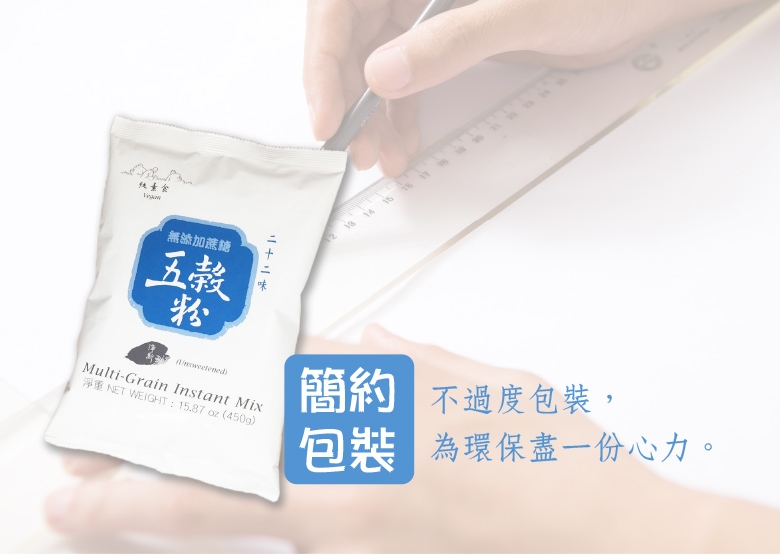 食用方法:約取25公克(3½匙)五穀粉(無添加蔗糖),加約130cc溫開水直接沖調,沖泡濃度可依個人喜好酌量增減。