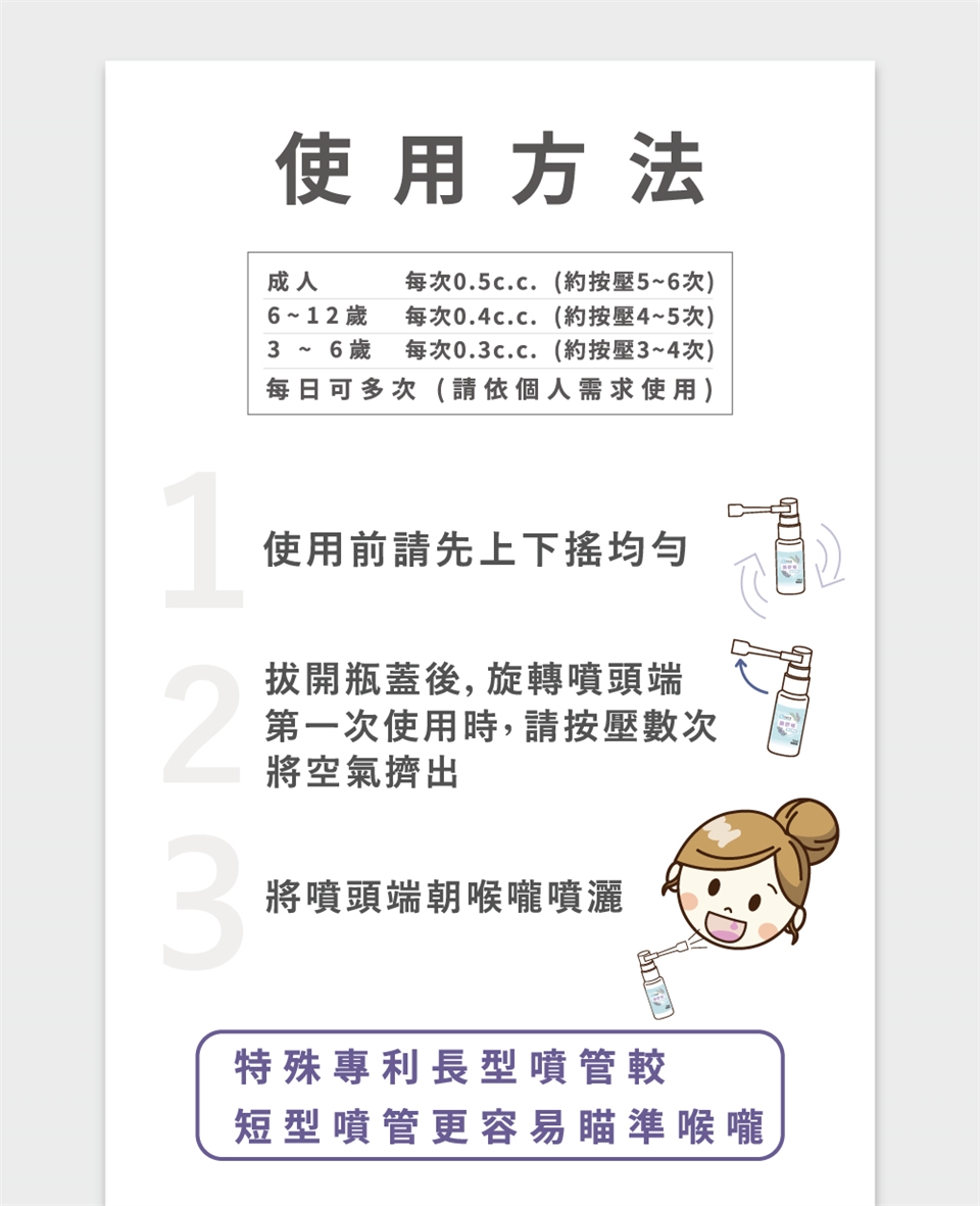 12歲以上-每次0.5c.c.(約按壓5~6次)